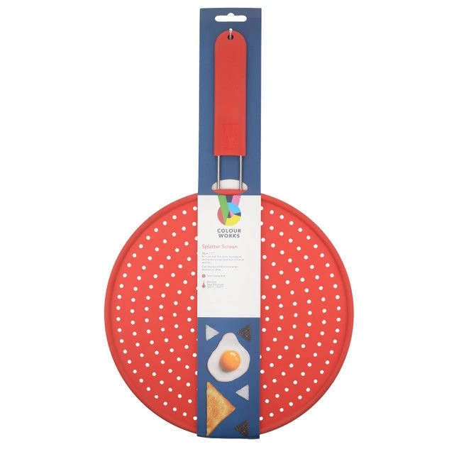 The Kitchen Craft Colourworks Silicone Splatter Screen provides the perfect barrier against hot spatters of oil, fat and boiling water from pans and woks.