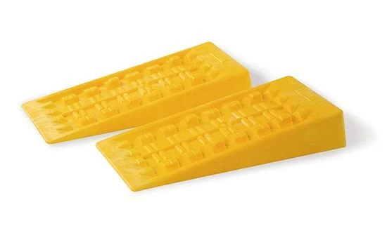 A pair of levelling blocks, ideal for motorhomes with dual tyres. The Jumbos are made in non-corrosive, impact and UV-resistant material, with a non-skid finish.