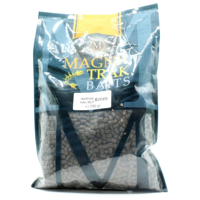 Dark, oily Magnatrak Halibut Pellets with a much higher fishmeal and protein content.