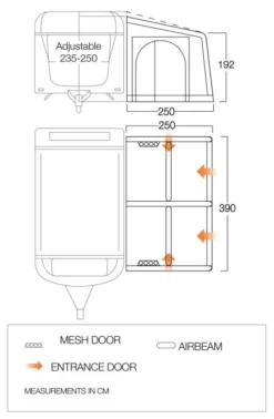 With just 2 fibreglass poles it is both quick and simple to pitch, and structurally very stable. This Mid/High version is designed to fit almost all vehicles with an awning channel height from 240cm to 290cm.