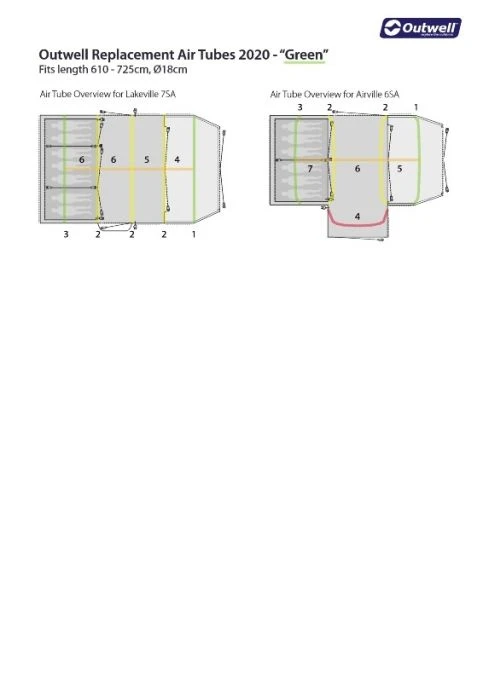 - Fits Outwell 2020 tents: Lakeville 7SA, Airville 6SA