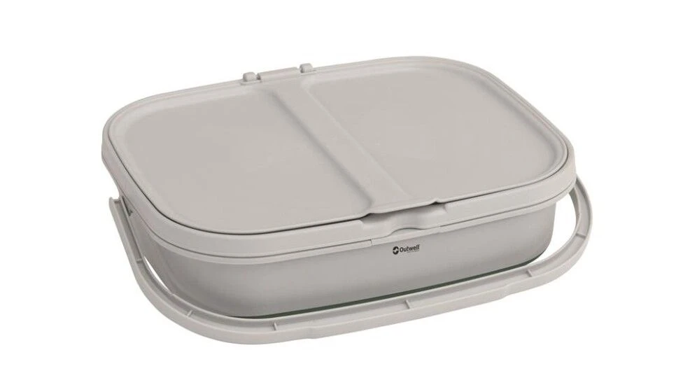 The two-compartment Outwell Collaps Recycleit Basket with lid allows waste to be sorted into bags for convenience while combating smells and insects.