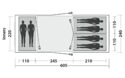 The Robens Starlight 2 pitches easily and quickly using double clip-on hooks to the main alloy hoop pole that is pre-angled to maximise useable space and comfort.