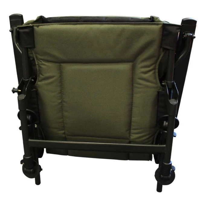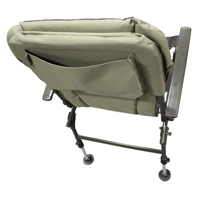 A very comfortable WSB reclining armchair with 2-tone Oxford padding, adjustable legs, mud feet, armrests, and a handy storage bag on the back of the seat.